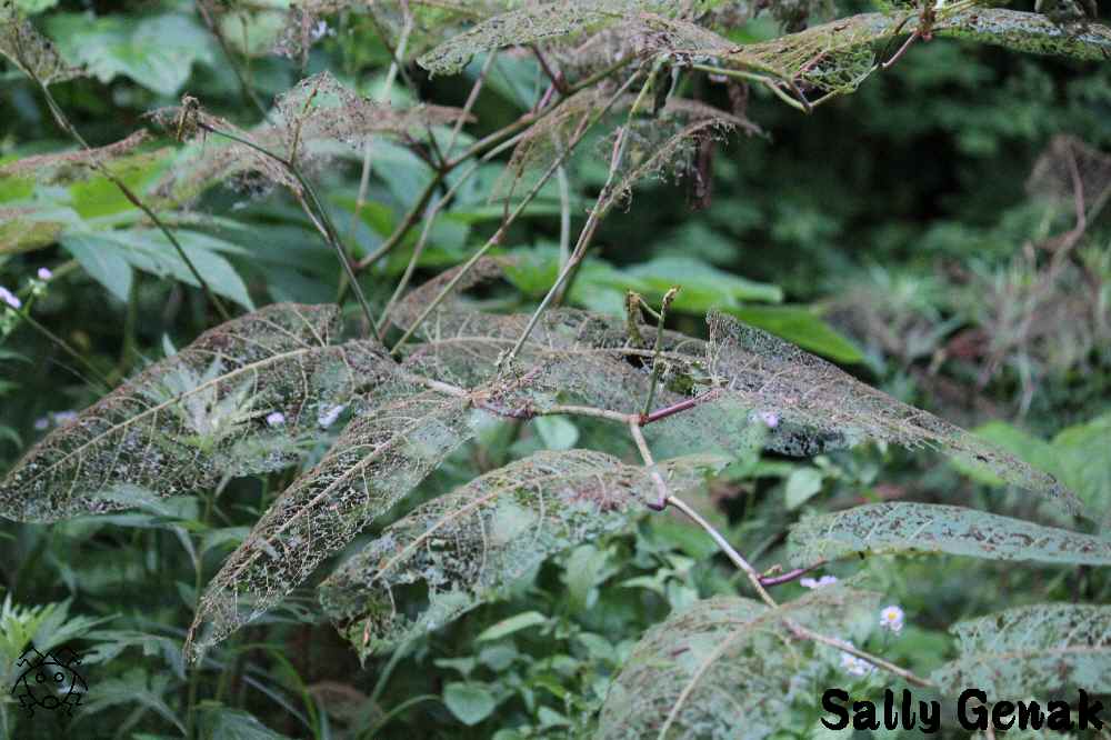 しばしば緑色の葉っぱの上で枯れ枝のように硬直しているのも、