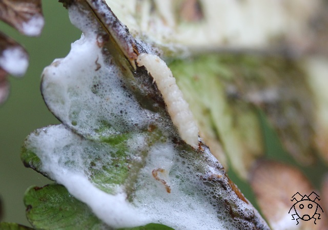この頃は、泡を取り除くと、葉柄内に若齢幼虫が見られた。