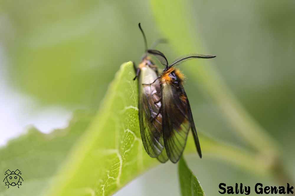 上にいるのが触角がクシ状になった雄である。