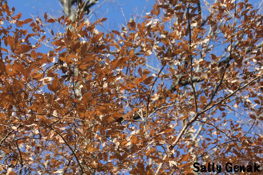 茶色の葉っぱは、春が来るまで決して落ちないとのことであった。