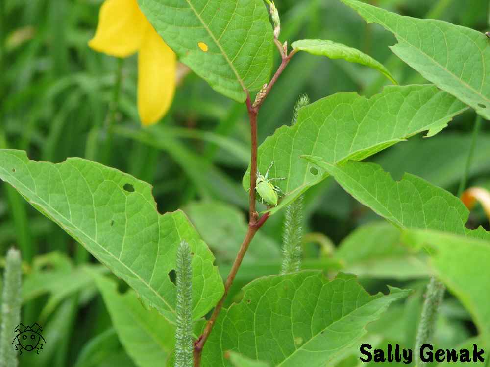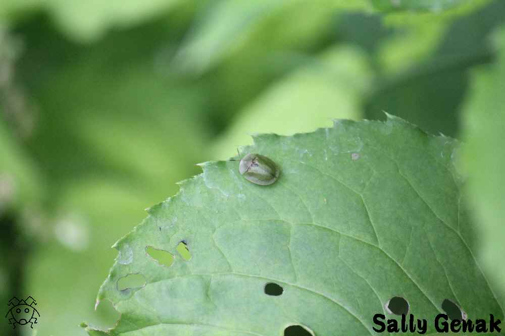 遠目で見るこのカメノコハムシも、全身が緑色である。