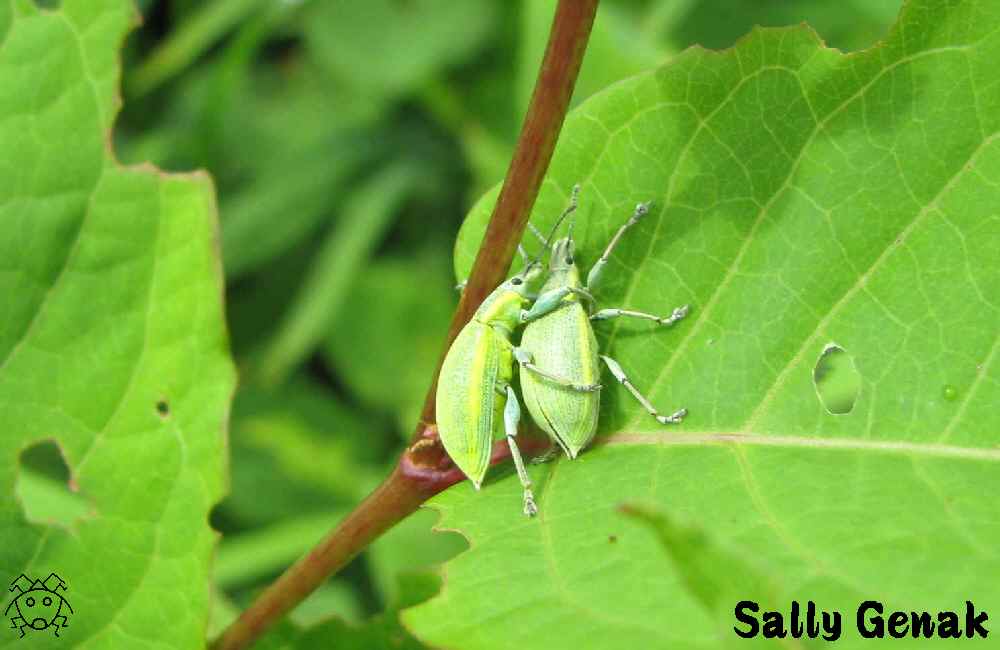一瞬「ドキッ!」とするような緑色の綺麗なゾウムシ。