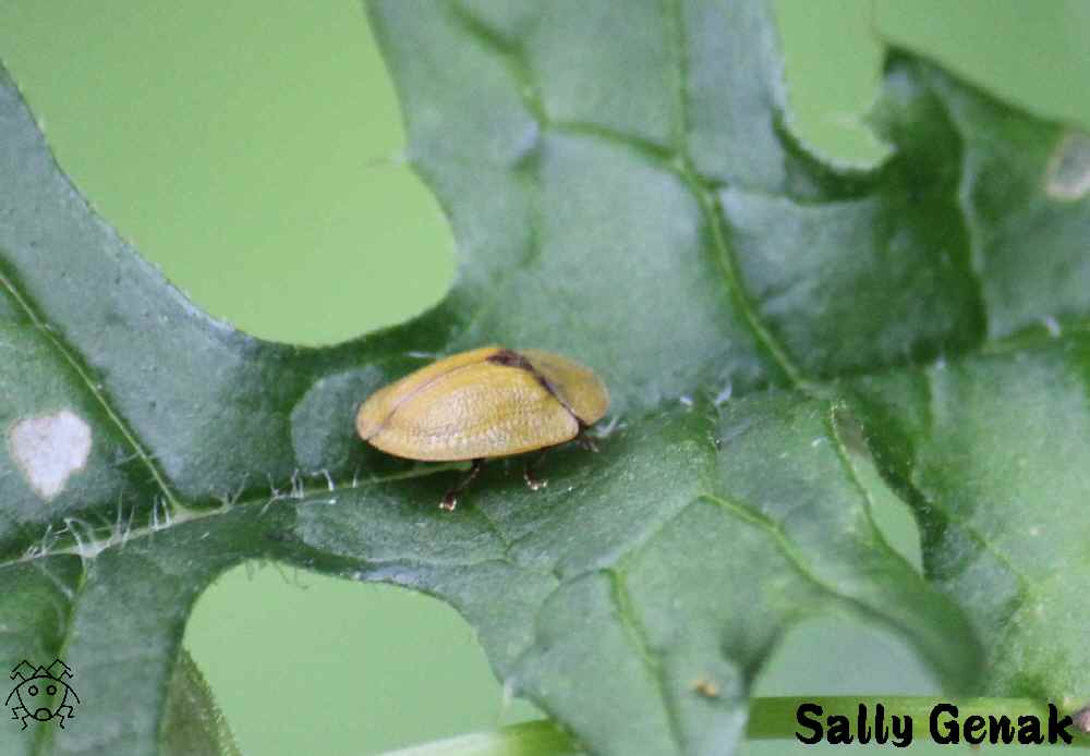 茶褐色の同じ形をしたカメノコハムシを見つけた。