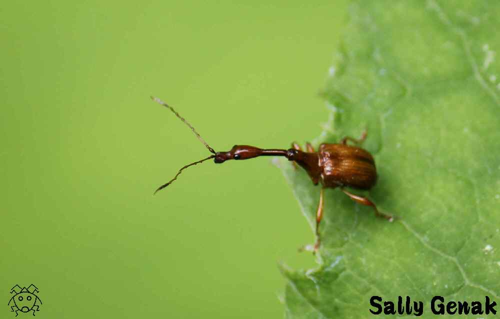 雌は、ヒゲもクビも長くない普通のオトシブミである。