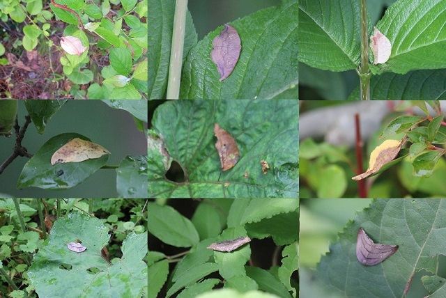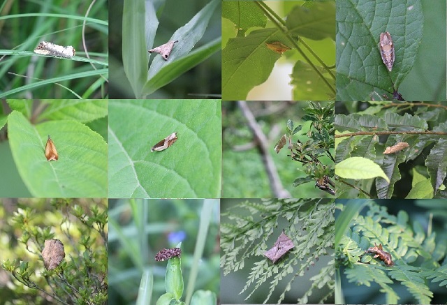 上段2番目の蛾を除いて、全て本物の枯れ葉です。