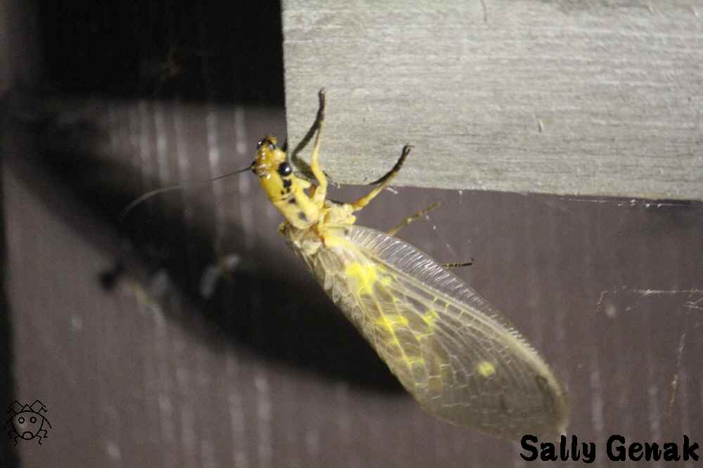 体は黄褐色で大きな翅を持った昆虫で、