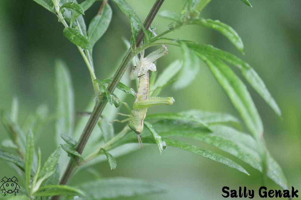 以前紹介したアシグロツユムシの自然状態での羽化写真は、、