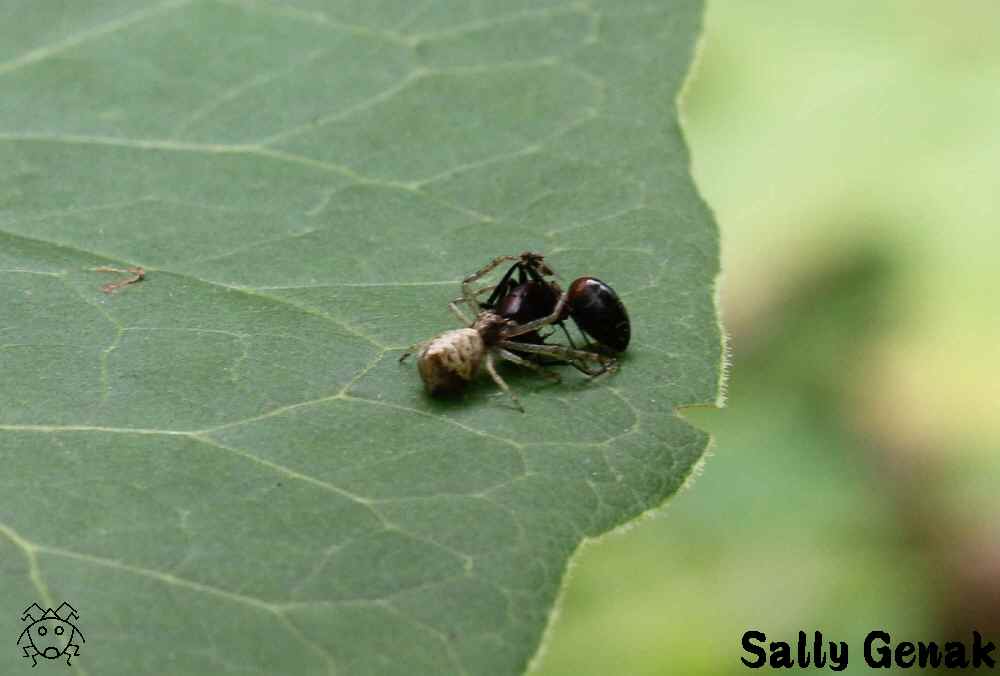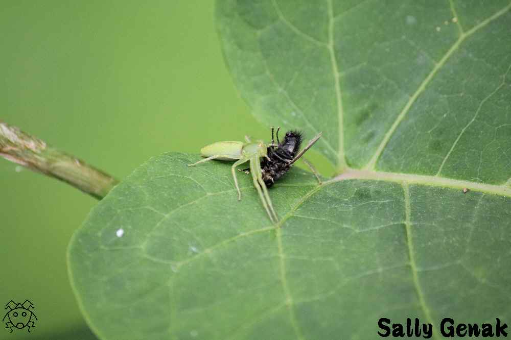 ワカバカニグモが、ハエを捕獲して食事中。
