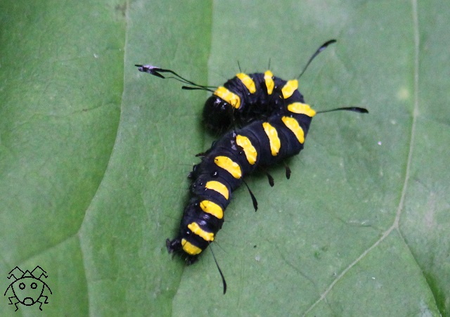 黄色と黒の色彩になるのは、終齢幼虫のみである。