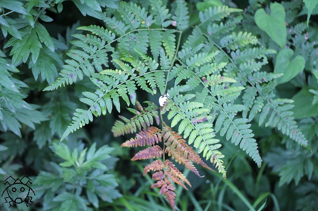 こんな風に、先端が褐色になったオシダが、ときどき目につく。