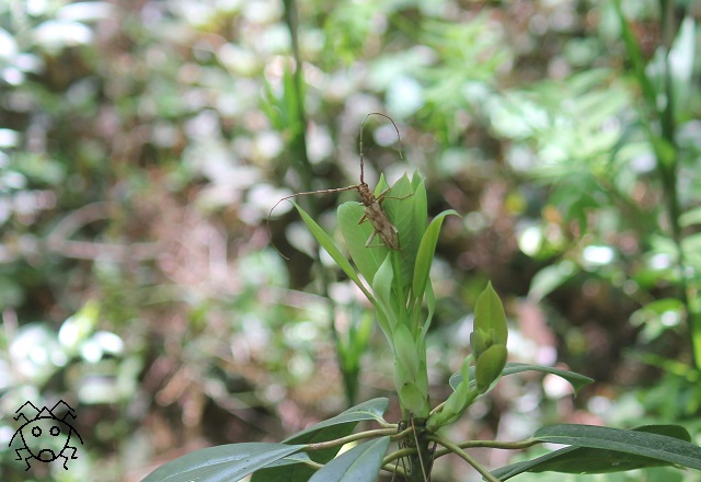 隠れるように静止していたフトハサミツノカメムシの雄を見つけた。
