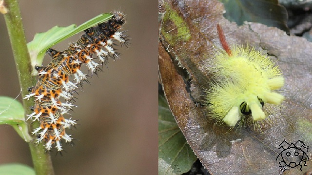 左: ムラサキシャチホコ 宮古市・岩手(20130814)