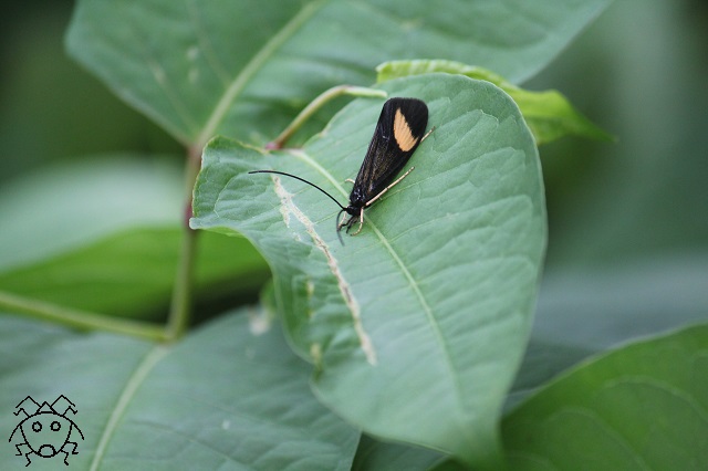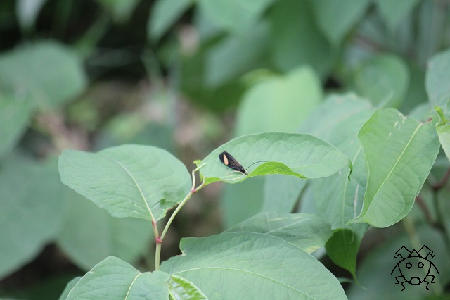 真っ黒な翅に、よく目立つ黄白色の三日月。