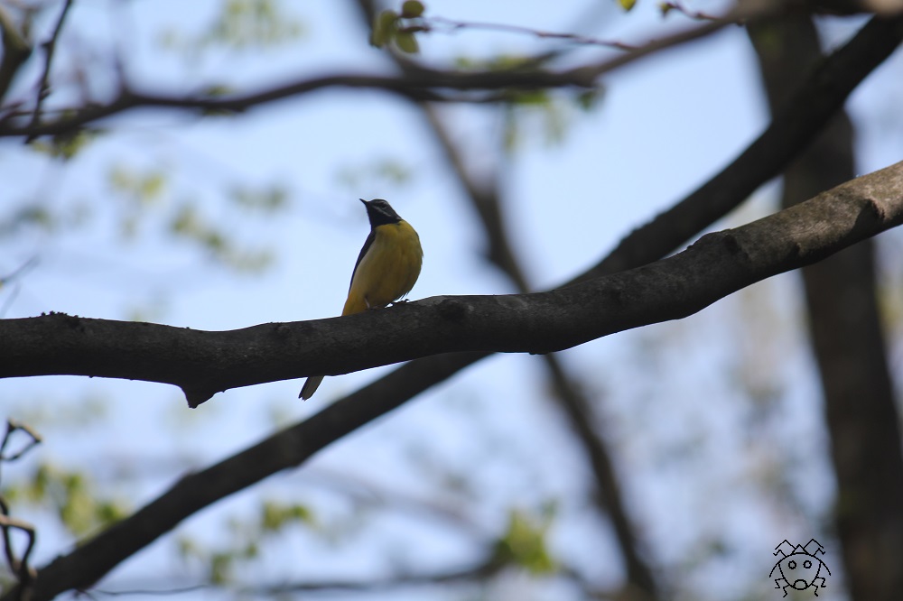 尾や翼は黒色だが、一部に青色の目立つ模様がある。