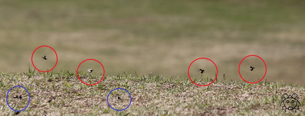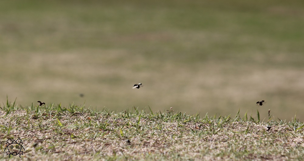 芝生の上を、沢山の雄が、雌を探して飛び回る。