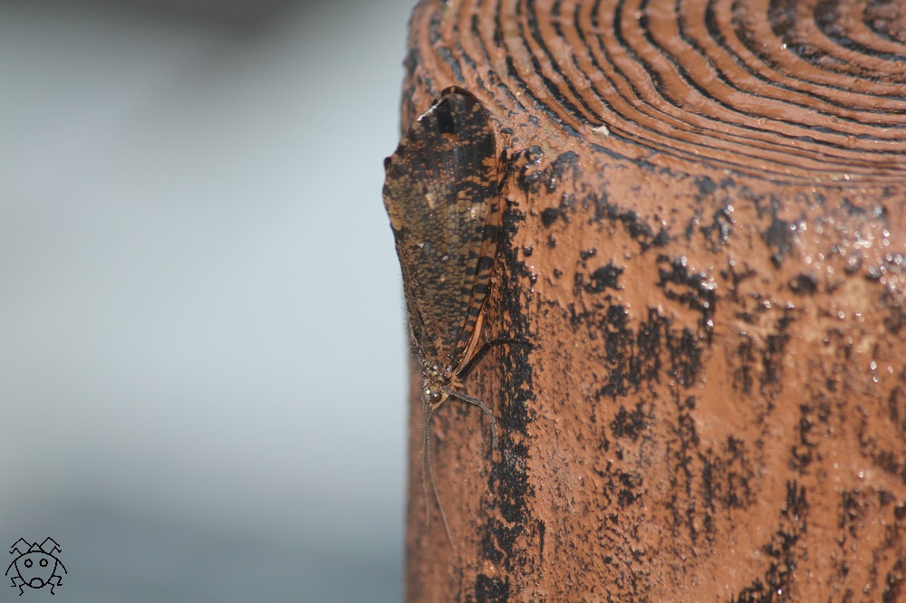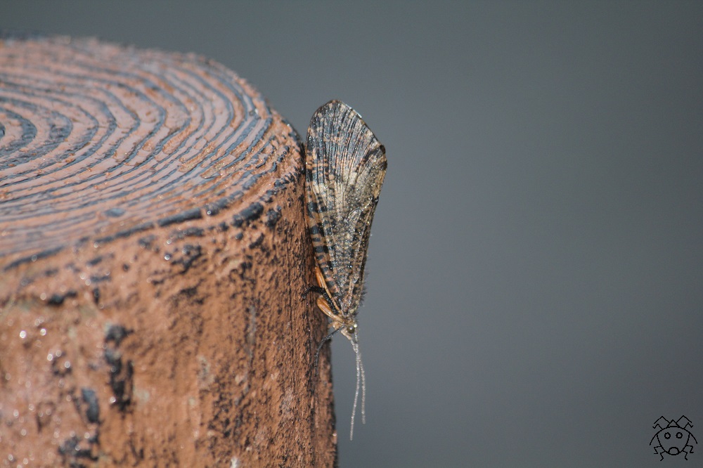 ムラサキトビケラは、蛾に良く似ている。