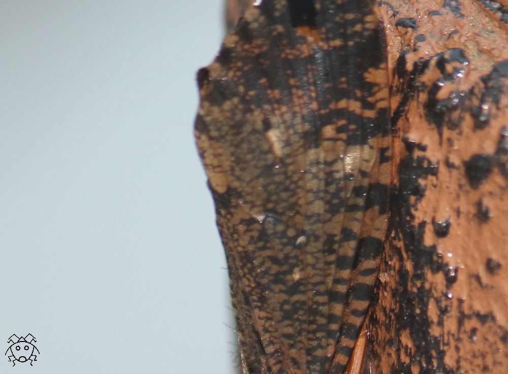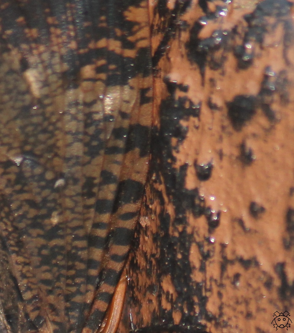 トリミングして、翅と背景の模様を比較してみると、