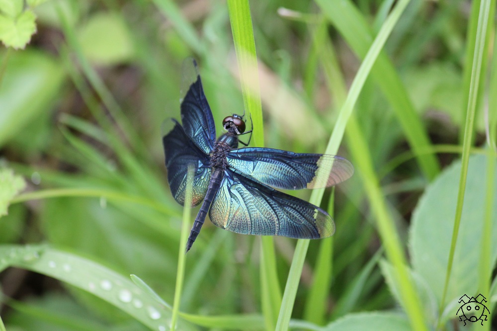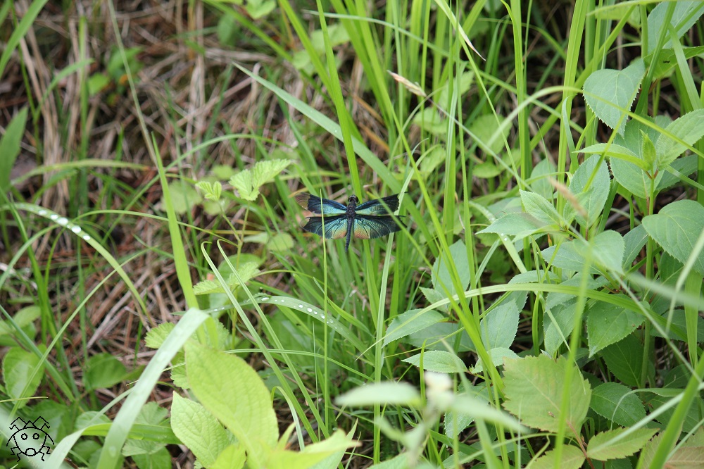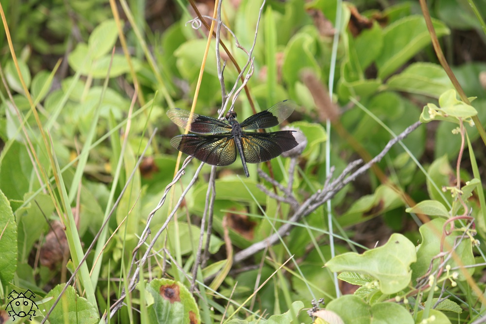翅に金属光沢のあるチョウトンボ。