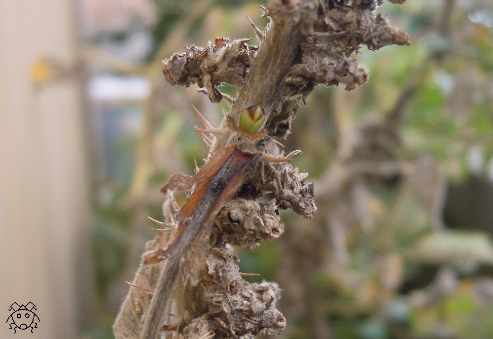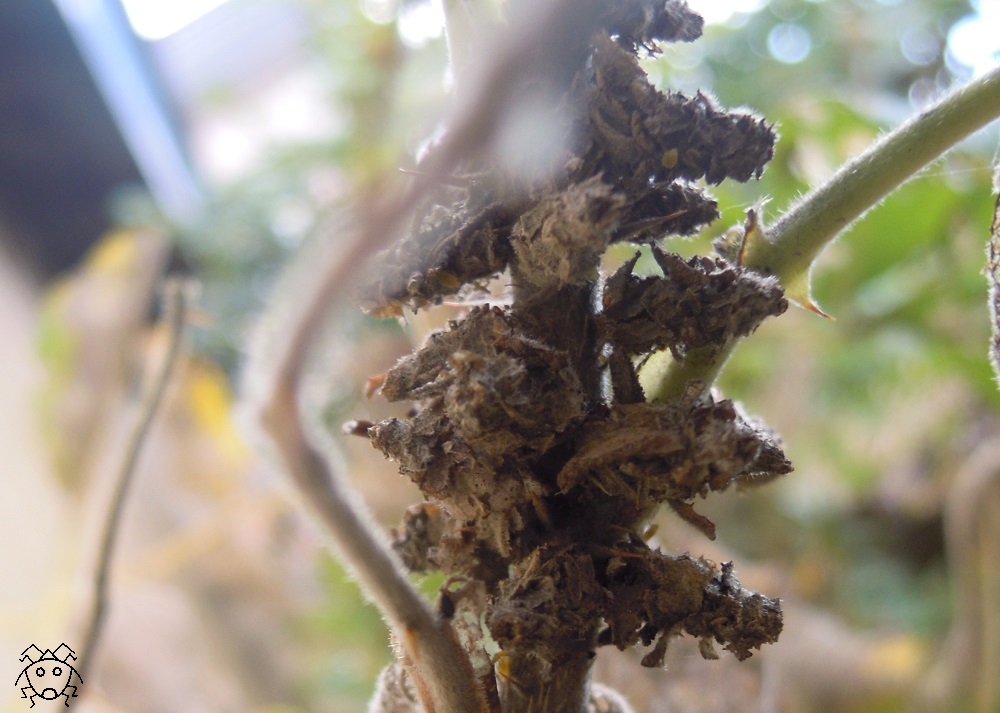 沢山のミノムシが、バラの棘のようにも見える。