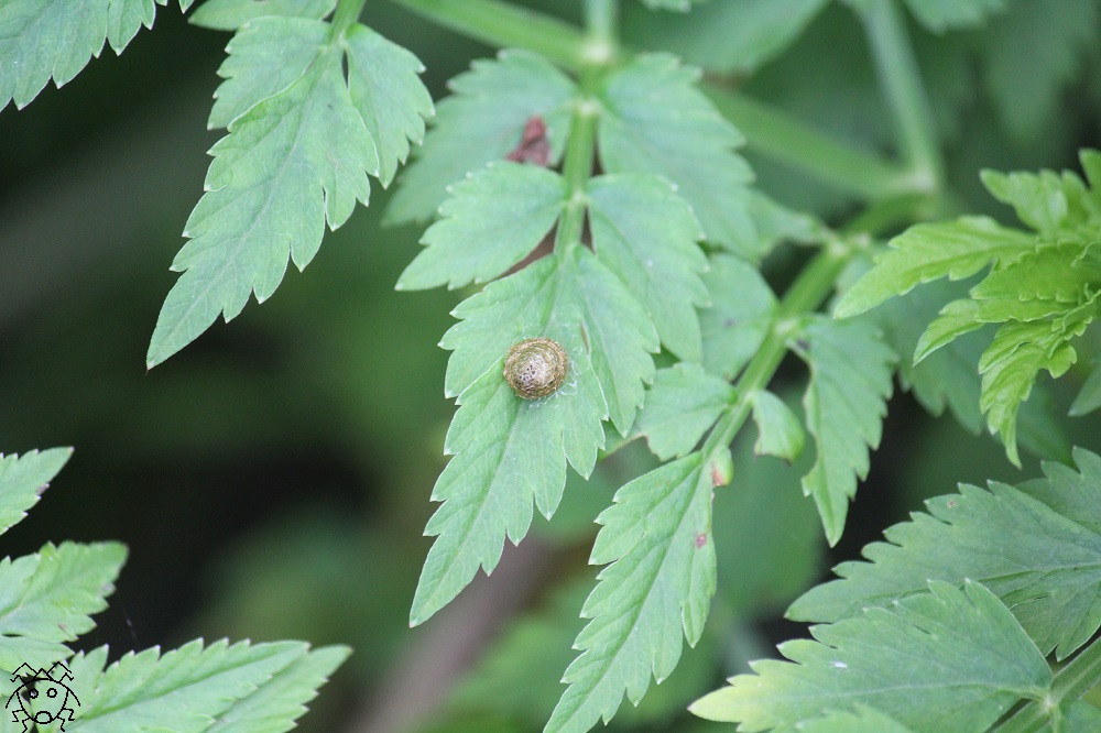 セリ科植物の葉っぱの中央に、