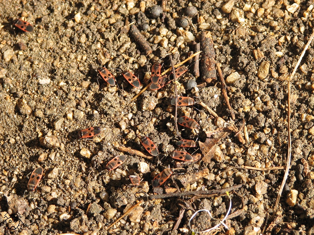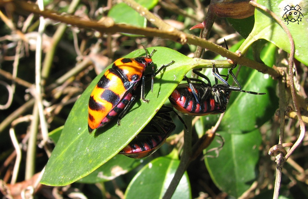 そっと捲ってみると、ヒメホシカメムシの集団がいた。