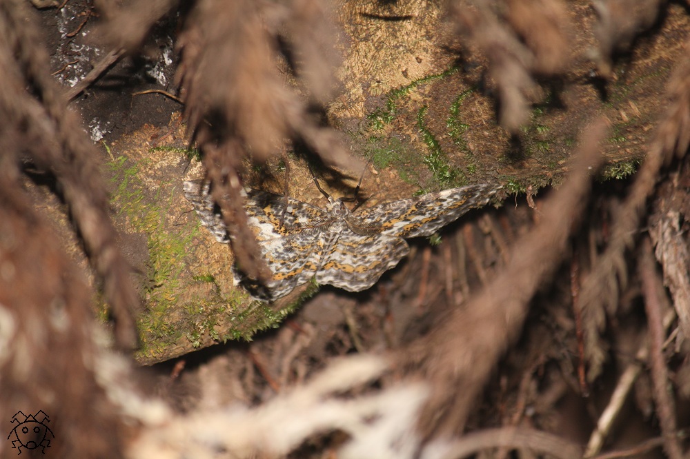 大きな杉の木の根元近くには、チャマダラエダシャクという蛾が、