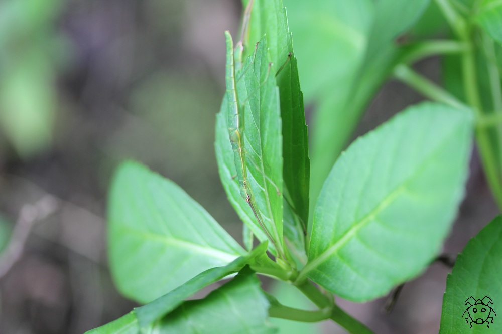 ショウリョウバッタが、完全に背景に溶け込んでいる。