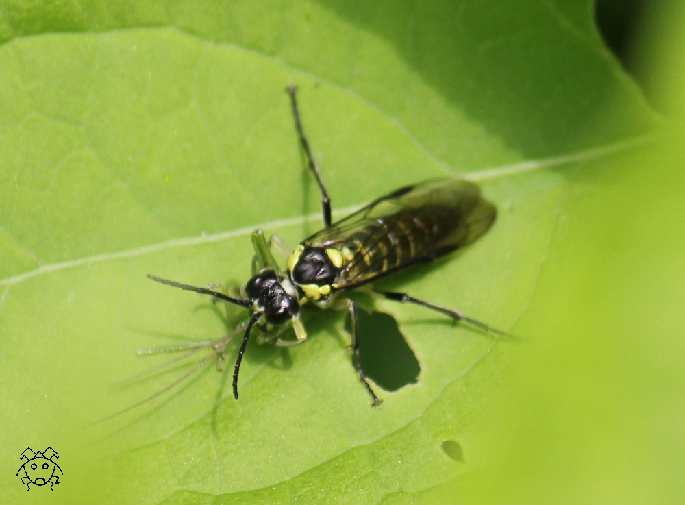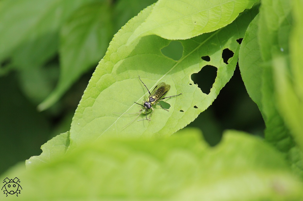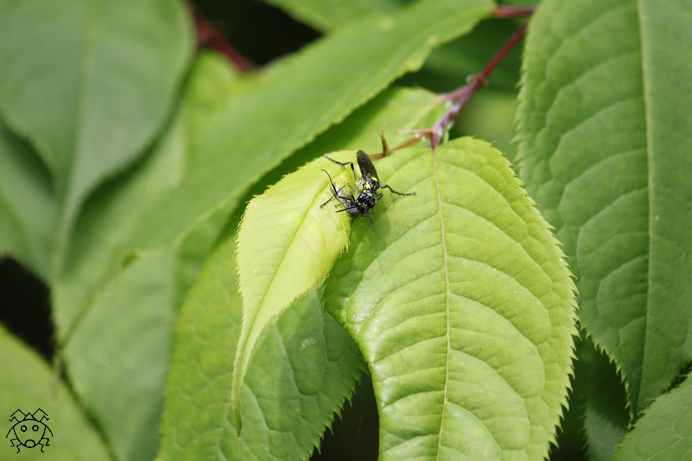 白岩森林公園の林道で、異常な動きをする2匹のハバチを、