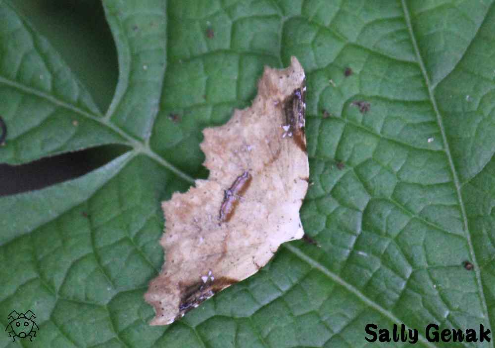 いわゆる蛾の輪郭がなく、この距離でも十分枯れ葉に見える。
