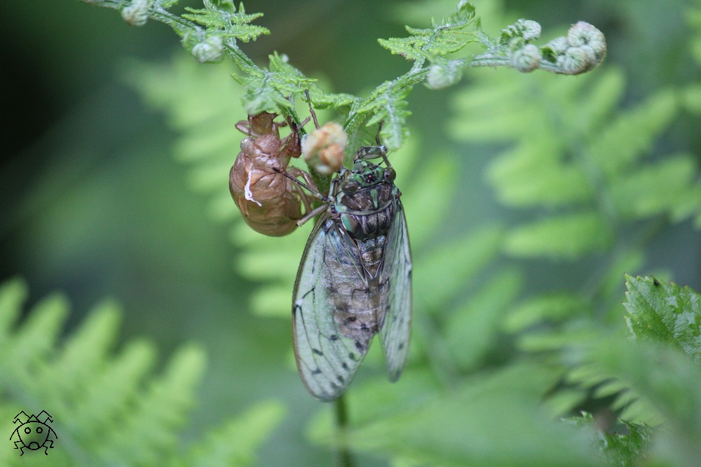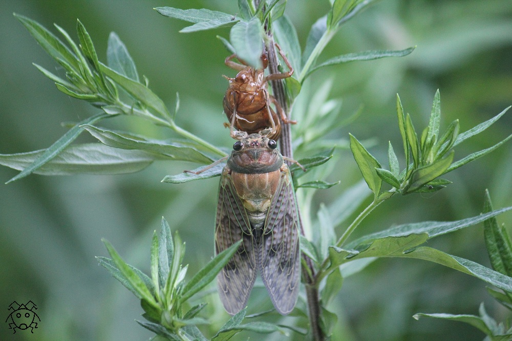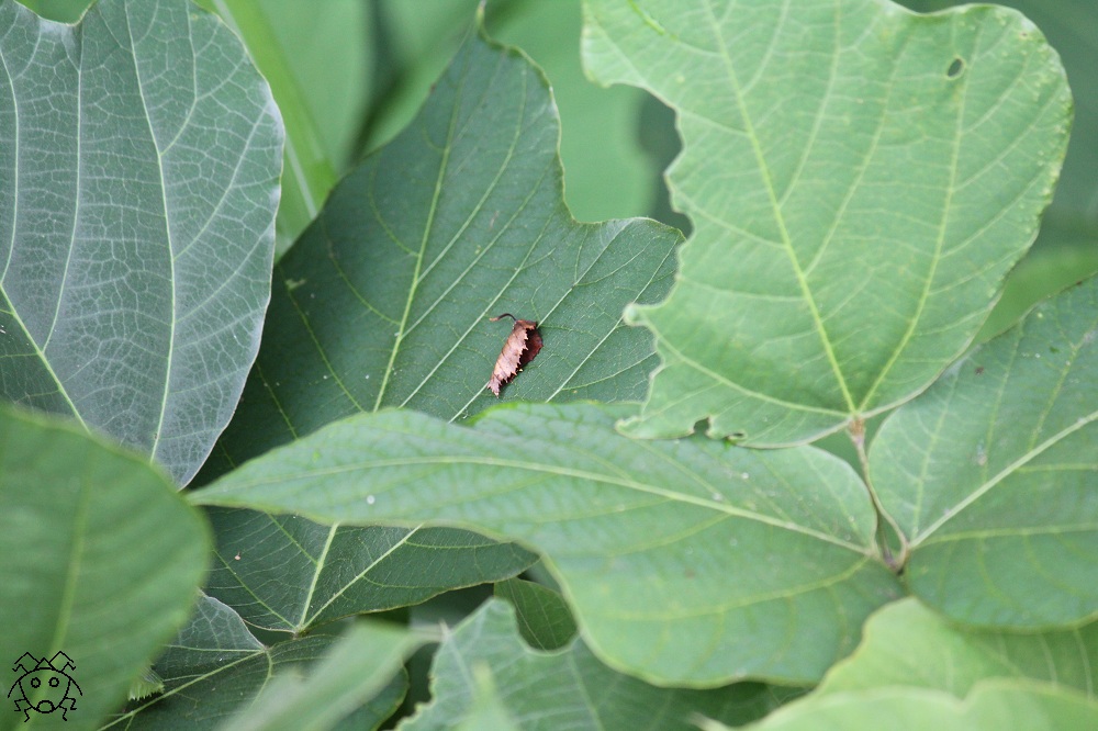 ななめ上に見えるのは、脱皮前の終令幼虫。