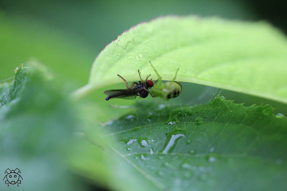 ワカバグモがハエの仲間を捕獲