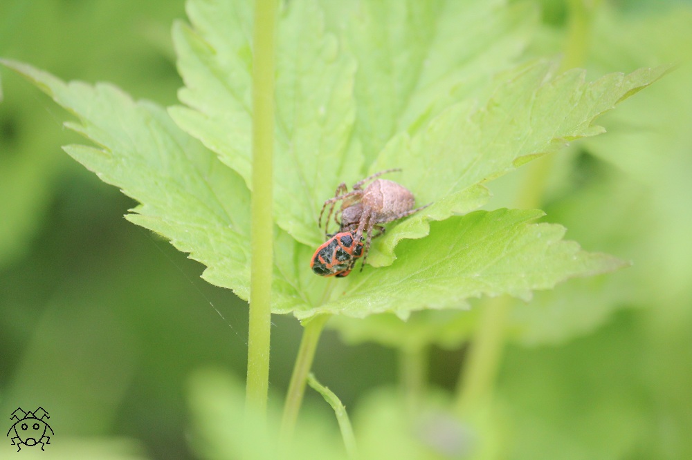 そして、トゲカメムシの背後にクモの姿を発見。